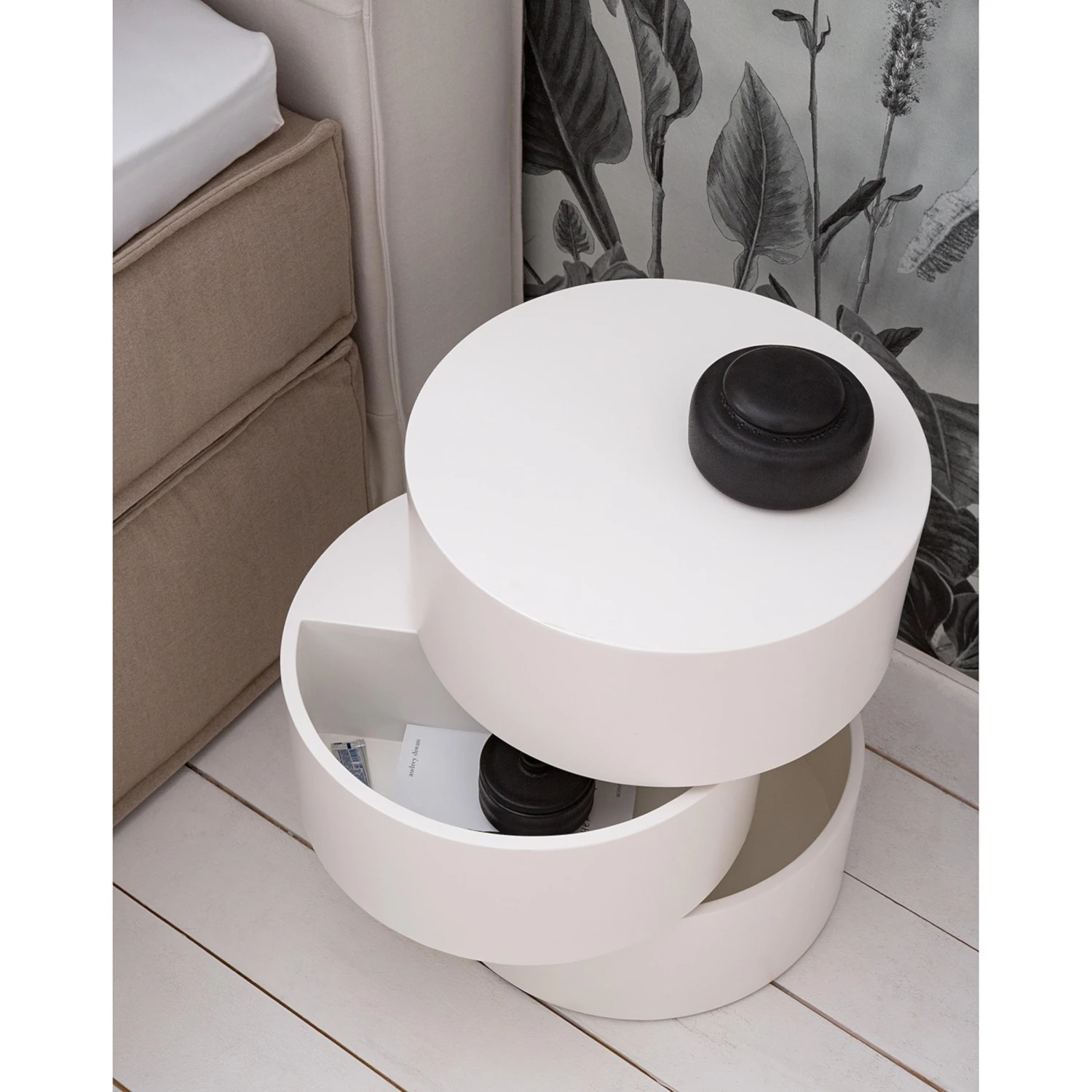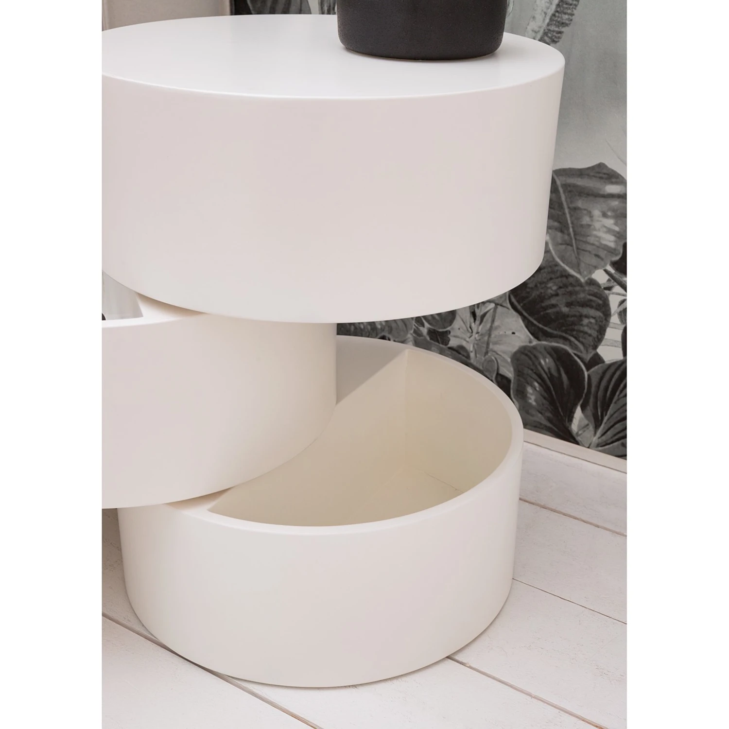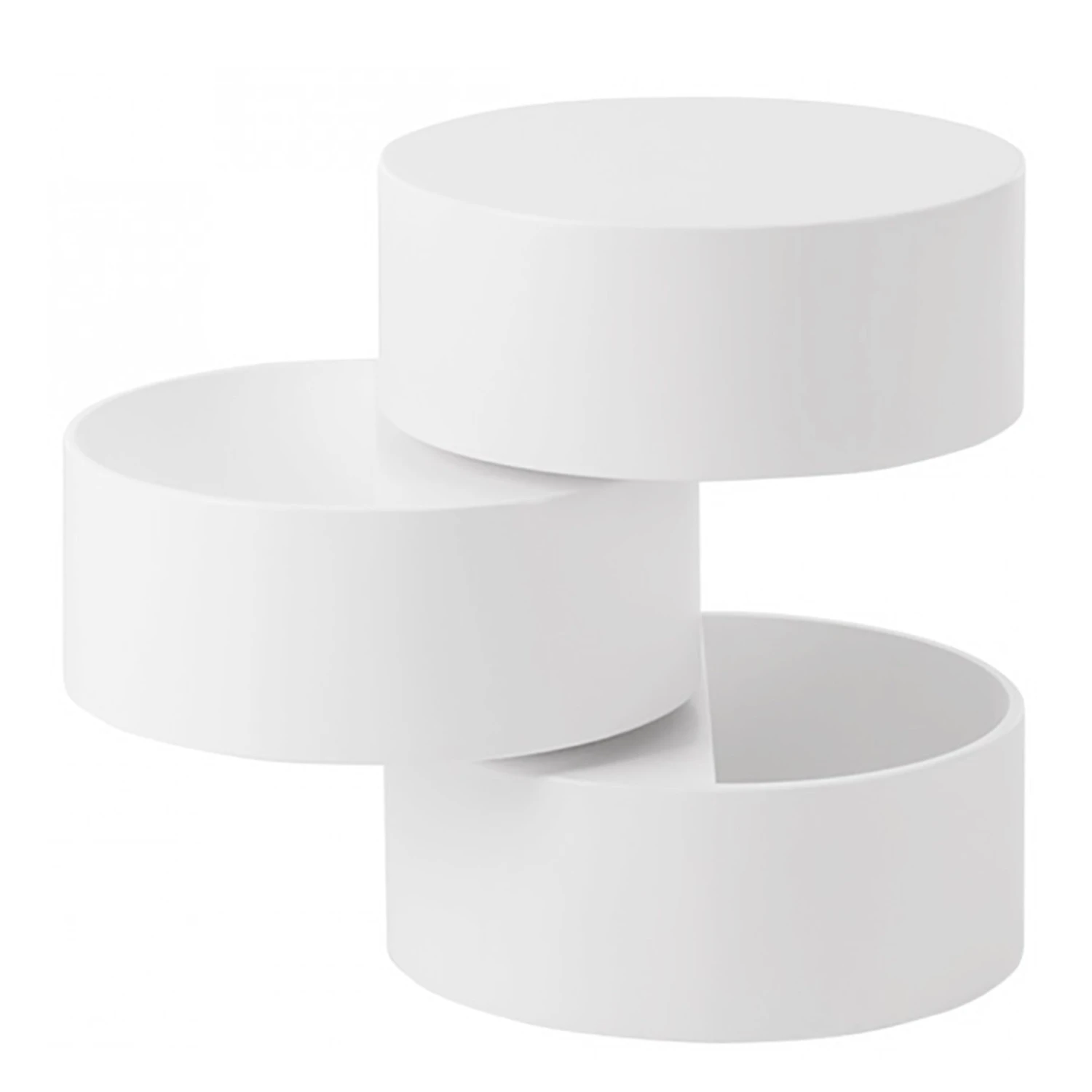 Der Beistelltisch Crazy bereichert Dein Zuhause im futuristischen Design in zeitlosem Weiß und nimmt Dir einfach alles ab. Die intelligente Konstruktion besteht aus drei runden Ebenen, die individuell verstellt werden können und nicht nur Ablagefläche, sondern auch Stauraum bieten. Perfekt, um Kleinigkeiten gekonnt verschwinden zu lassen. Der Beistelltisch von Fredriks besteht aus hochwertigen Faserplatten und überzeugt durch eine hervorragende Verarbeitungsqualität. Da die Oberflächen lackiert sind, glänzen sie nicht nur, sondern sind auch besonders pflegeleicht und geben Kratzern keine Chance. Der Beistelltisch Crazy wird Deine vier Wände lange mit seinem frischen Glanz bereichern.