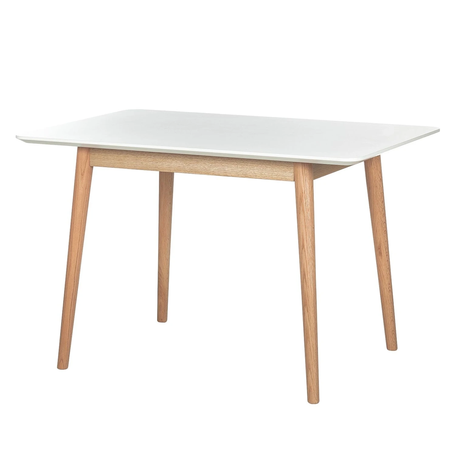 Der Esstisch Lindholm III ist ein Muss für alle Freunde des skandinavischen Wohnstils. Er besticht durch einfache und klare Linien. Das filigrane Gestell aus massiver Eiche zeigt eine feine Maserung. Das Gestell trägt eine weiße Tischplatte aus MDF. Dieses ist besonders hochwertig und mit der Güteklasse E1 ausgezeichnet. Diese zeichnet sich durch abgerundete Ecken und Kanten aus, die zum gemütlichen Sitzen einladen. Der Esstisch Lindholm III verbindet auf diese Weise eine stabile Konstruktion mit pflegeleichten Oberflächen, warmes Holz mit einer kühlen und formschönen Oberfläche.