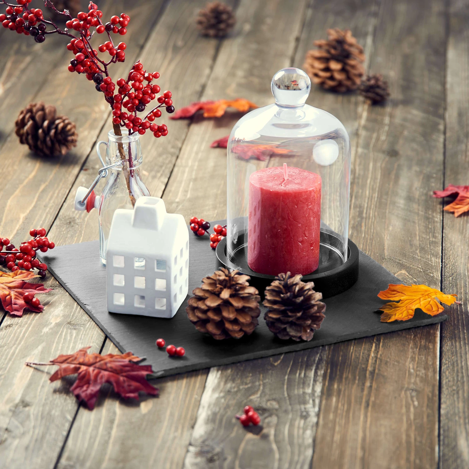 Die raue Schönheit der Natur zeigt sich in diesem schlichten Untersatz aus abgeschliffenem Schiefer. Er schützt empfindliche Tische oder Sideboards vor Kratzern, vor Hitze (z. B. von Laternen oder Kochtöpfen) und vor feuchten Ringen, die durch Flaschen und abgestellte Gläser entstehen können. Doch die Schieferplatte beweist auch bei Dekorationen viel Talent: Es können z. B. mehrere massive Stumpenkerzen auf dem Untersatz angeordnet werden. Auf der Unterseite mit weichen Füßen versehen. In weiteren Größen erhältlich.