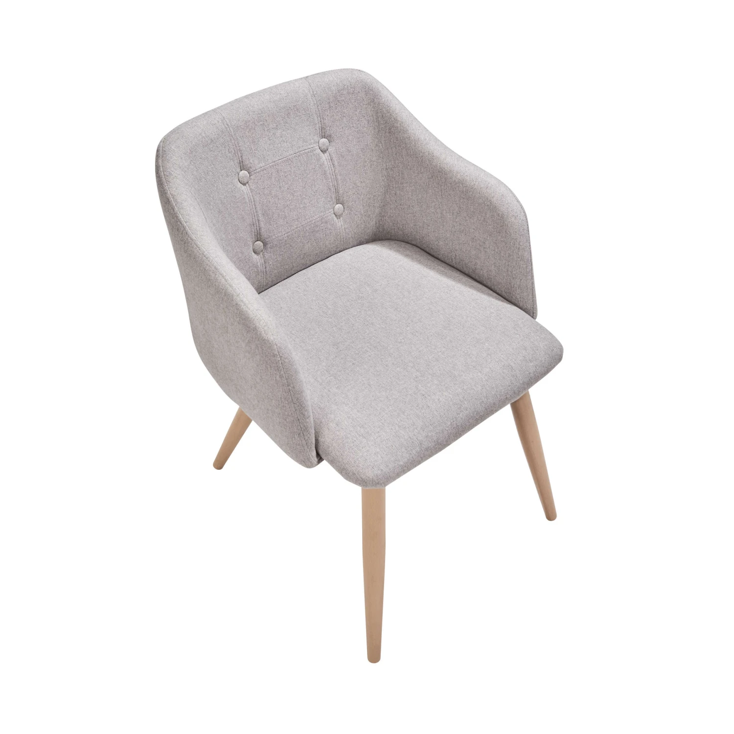 Bequemes Sitzen und stylisches Design in einem: Alles passt perfekt beim Rock ’n‘ Soul-Stuhl im 2er-Set. Vom pflegeleichten grauen Filzbezug auf dem gepolsterten Sitz über die komfortablen Armlehnen und Knöpfe in der Rückenlehne bis zu den nach unten hin zulaufenden Metallbeinen in Holz-Optik. Mit einem dekorativen Kissen oder einem weichen Lammfell verpassen Sie dieser Sitzgelegenheit zudem einen individuellen Look. Sowohl für das Ess- als auch das Wohn- oder Schlafzimmer ideal.